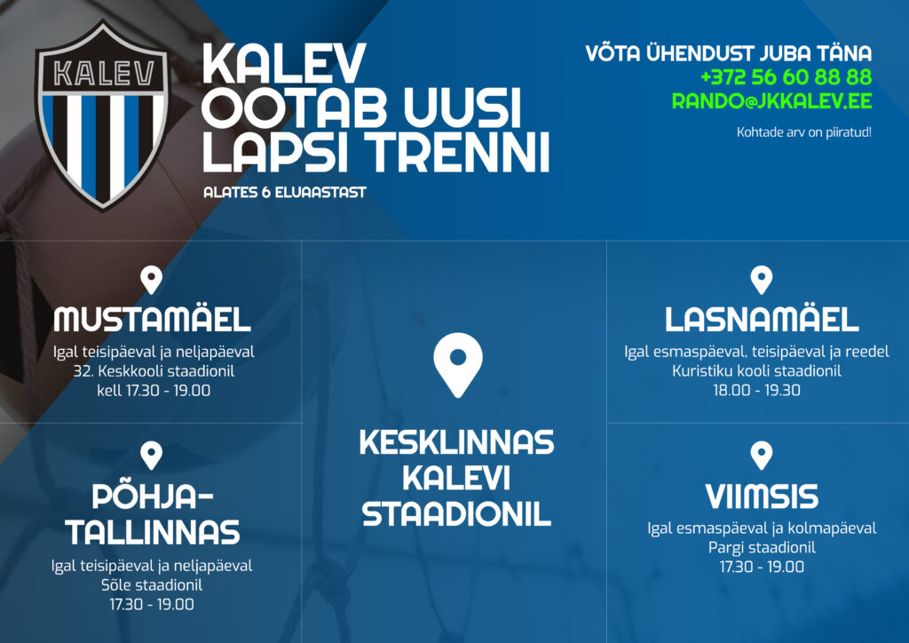 Kirjutage meile aadressile kool@jalgpallikool.ee või helistage 56 60 88 88